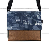 Impression sur tissu en denim. Les rabats "Éphémères" sont confectionnés à partir de tissus que nous achetons de divers fournisseurs. Ce sont donc des éditions limitées. Les imprimés peuvent différer de la photo, selon l’endroit où le tissu a été taillé.