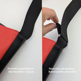 Votre bandoulière actuelle sera également modifiée : nous y ajoutons du velcro aux extrémités pour la rendre compatible. À noter que la longueur maximale de la bandoulière passera de 60" à 54".