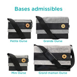 Nous adaptons votre base de sac (Mini, Petite, Grande et Grand-maman Ourse) pour y ajouter des anneaux métalliques, permettant l’installation d’une bandoulière amovible et interchangeable.