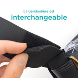 • 1 bandoulière noire interchangeable (ajustable jusqu'à 60 po).