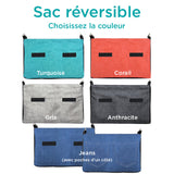 • À noter (option réversible jeans seulement) : Le tissu jeans a été blanchi deux fois, mais un risque de légère décoloration demeure si le sac est mouillé. Évitez l’humidité prolongée.